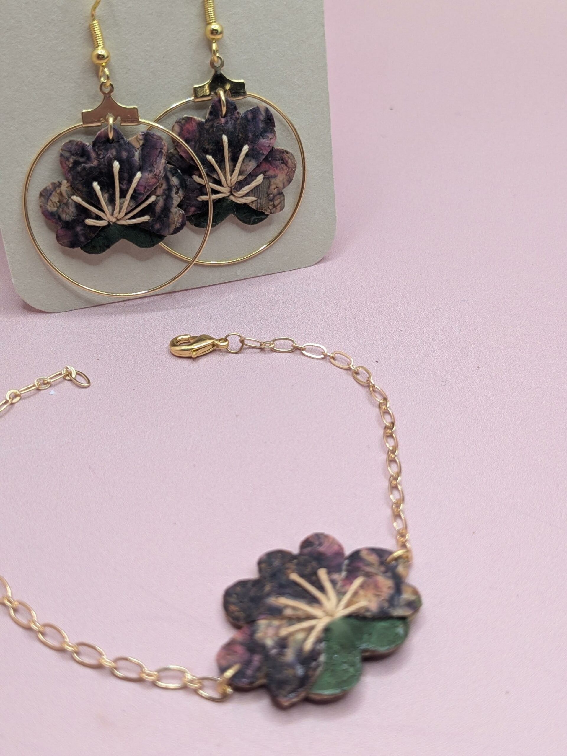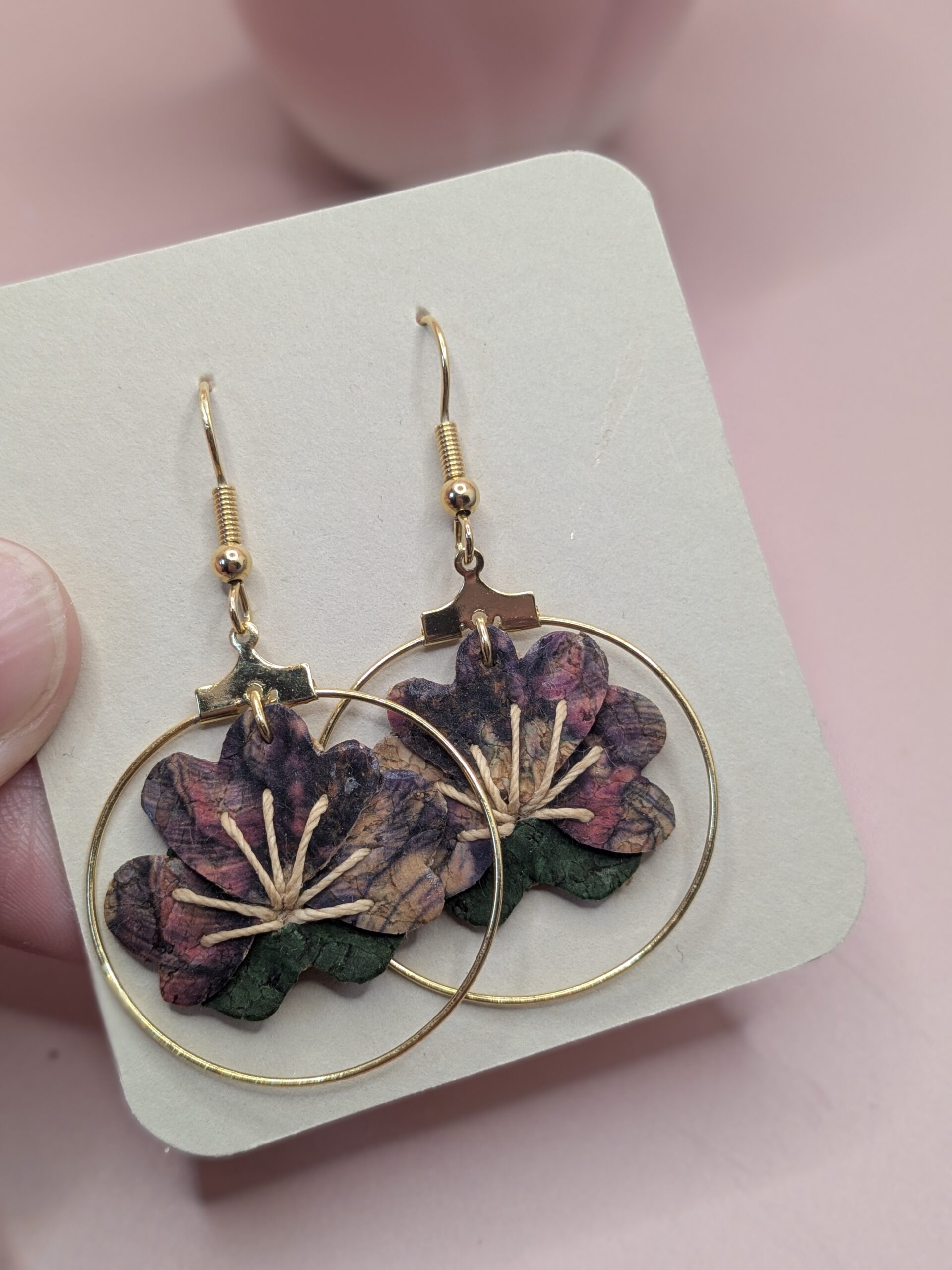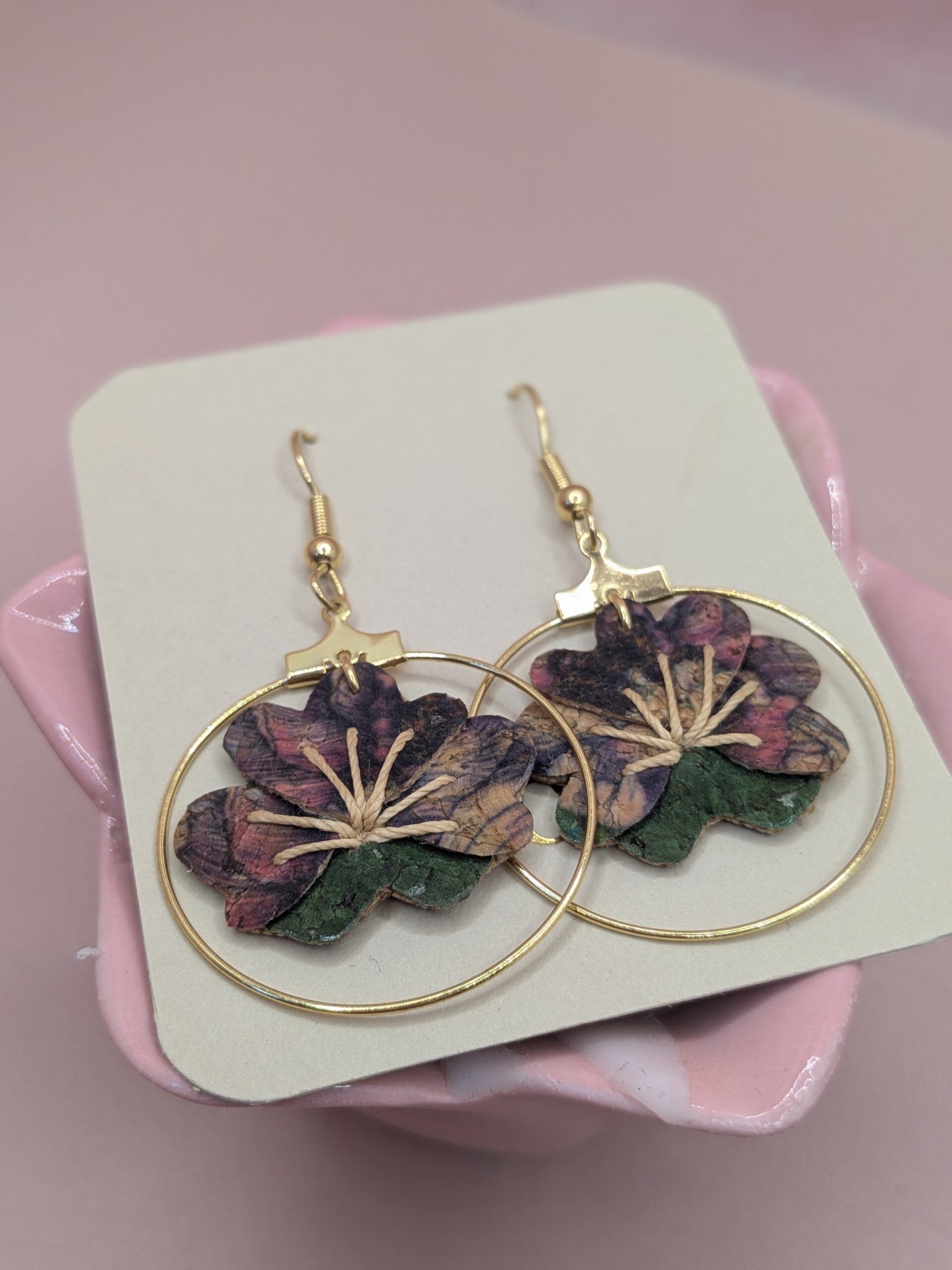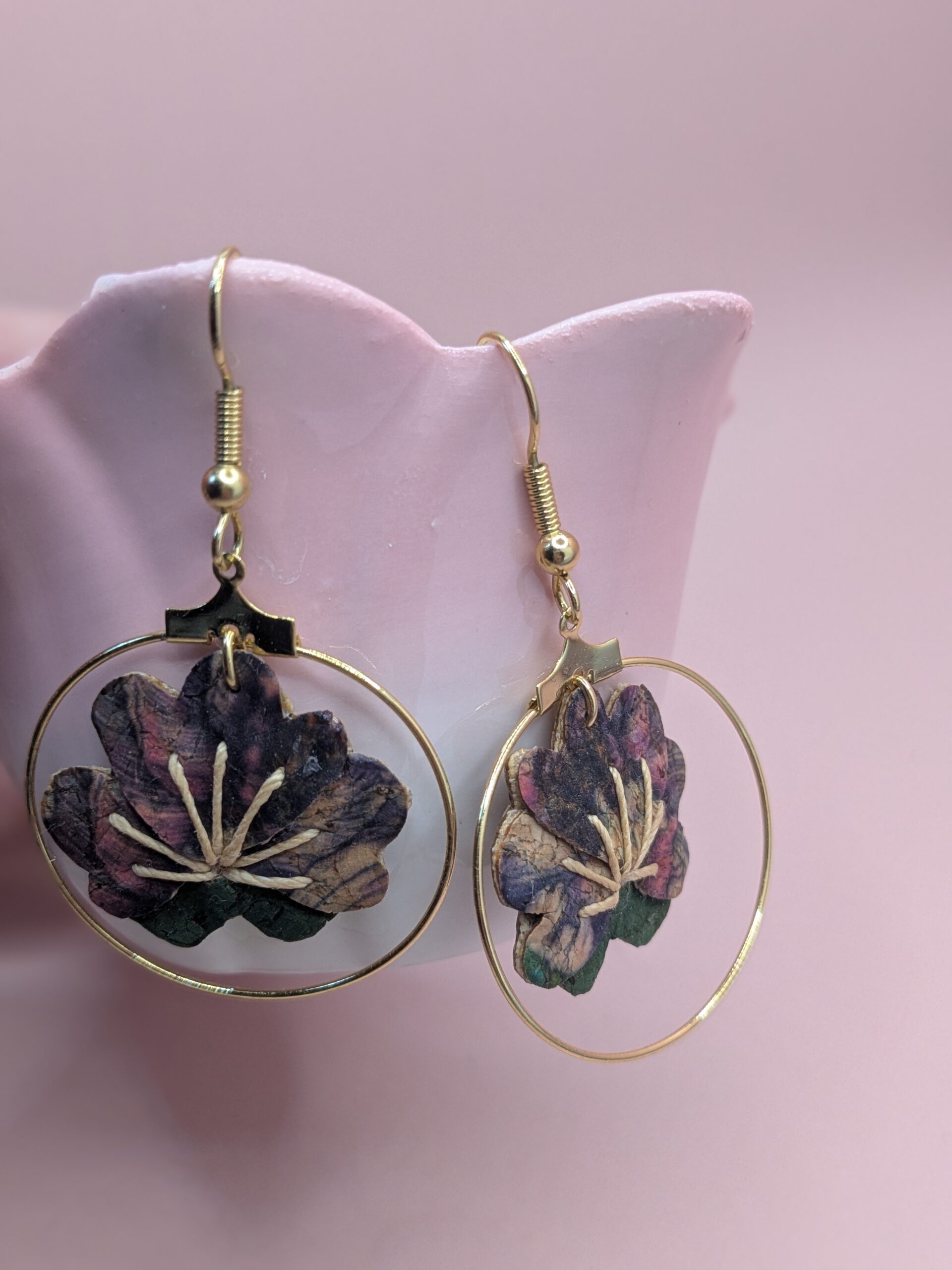 Légères et délicates, ces boucles d’oreilles en liège dans les tons verts et violet apporteront une touche de douceur à votre tenue.