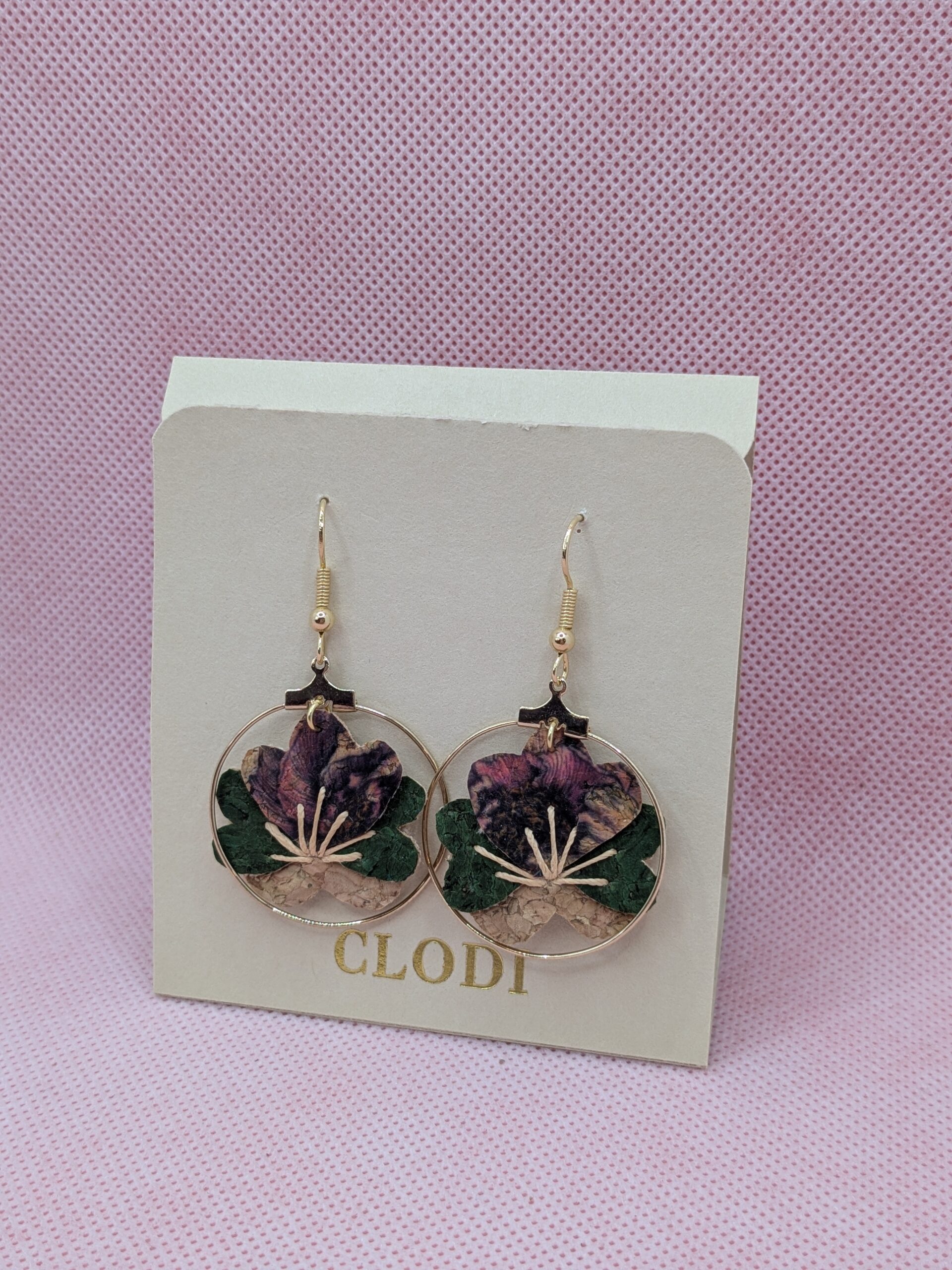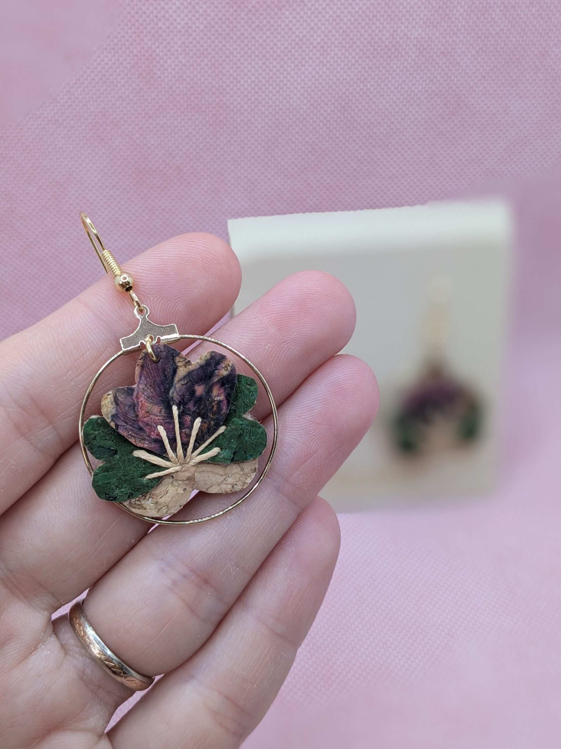 LĂ©gères et dĂ©licates, ces boucles d’oreilles en liège avec des motifs fleuri violet apporteront une touche de couleur Ă votre tenue.