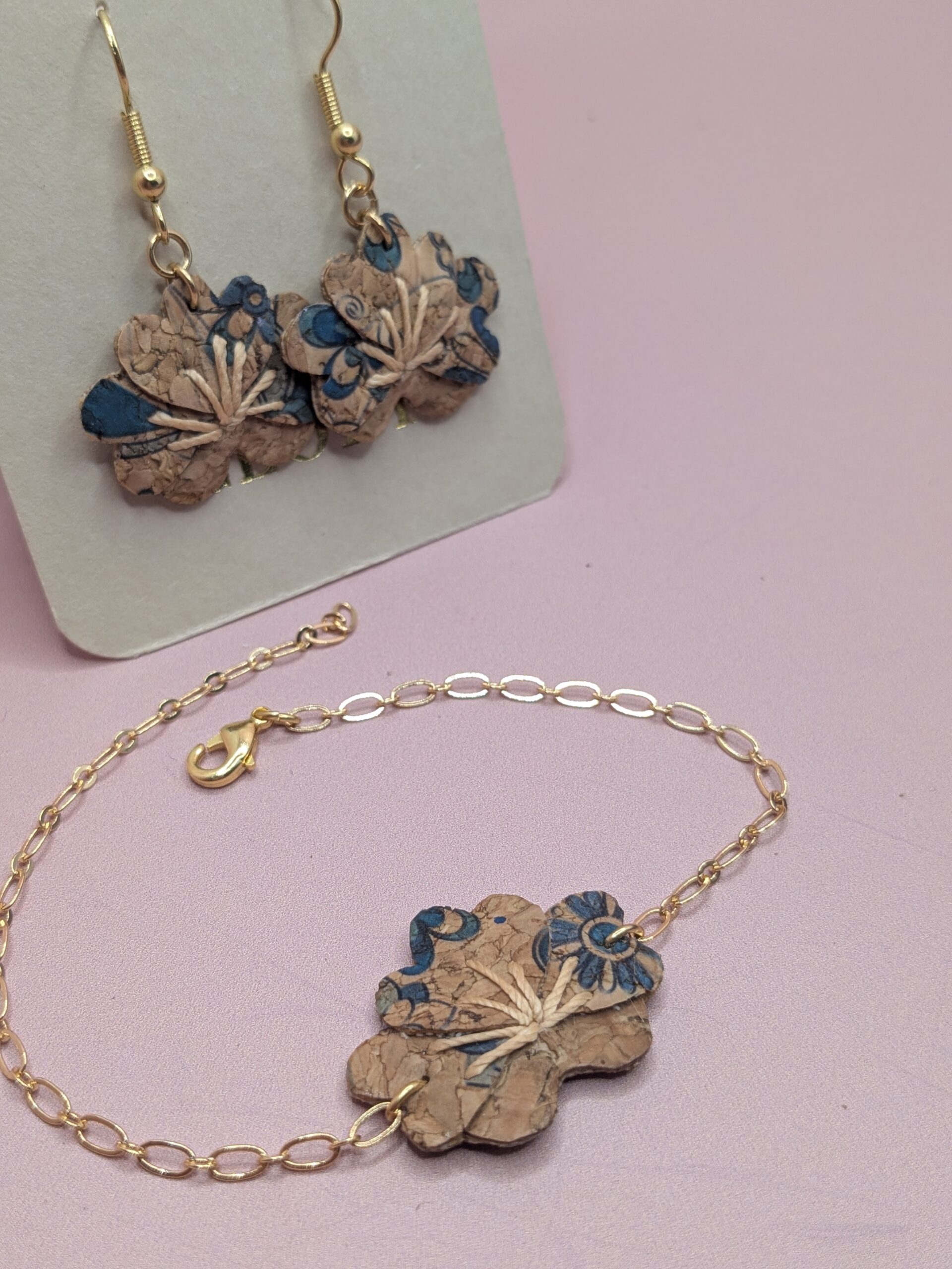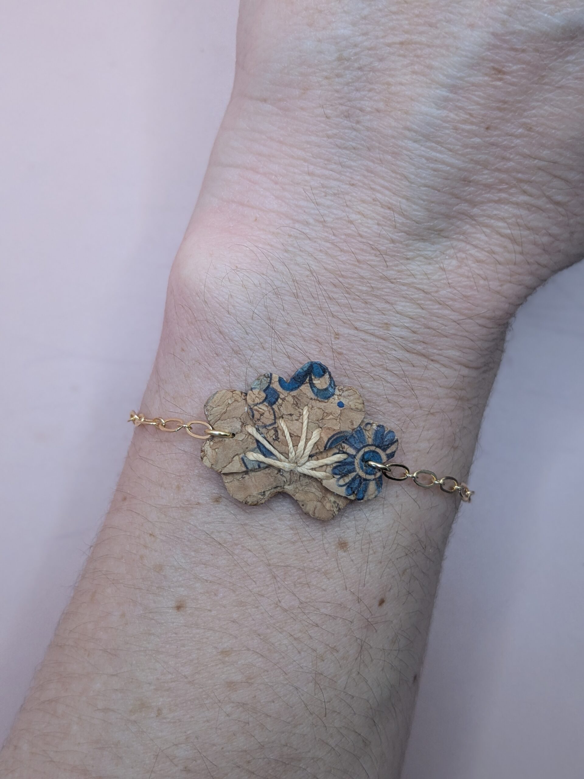 Légères et délicates, ce bracelet en liège dans les tons bleu et beige avec de légers motifs floraux apporte une touche de douceur à votre tenue.