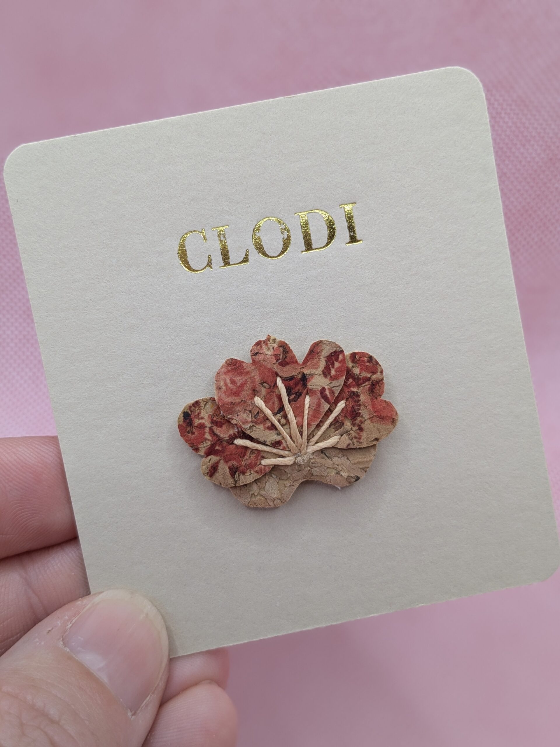 Ajoutez une touche délicate à vos tenues avec cette broche réalisée en liège, une matière végétale, légère et durable.