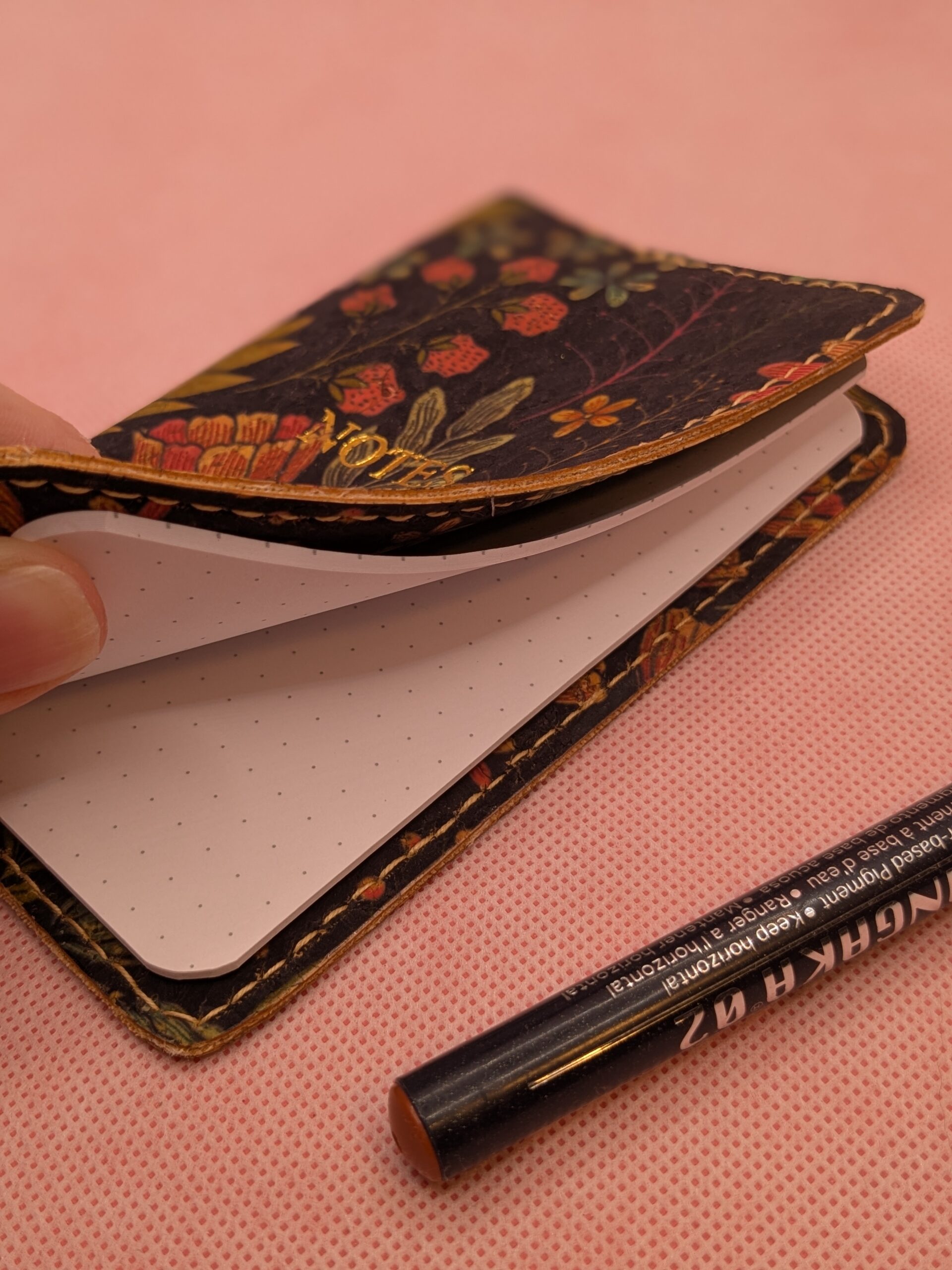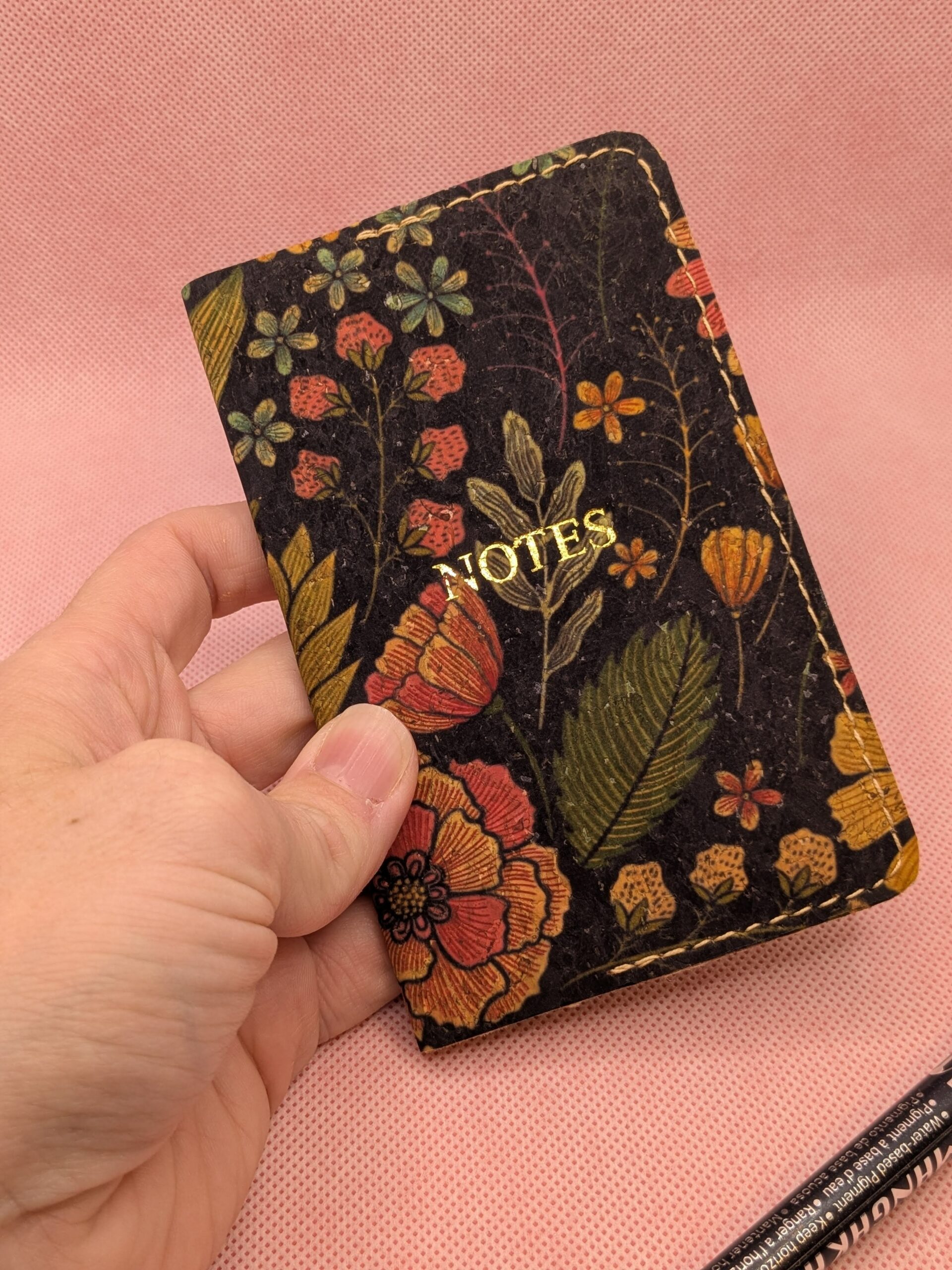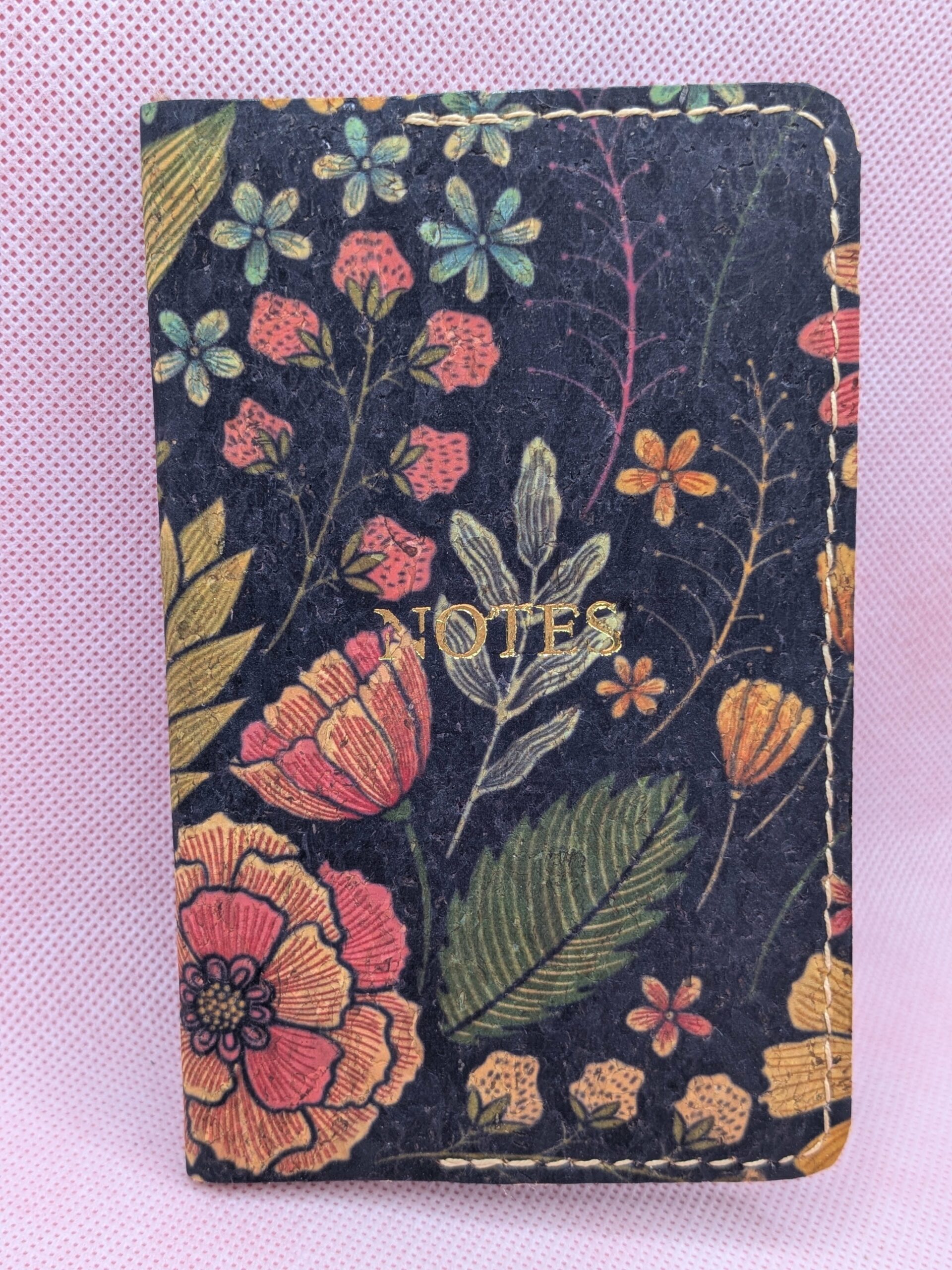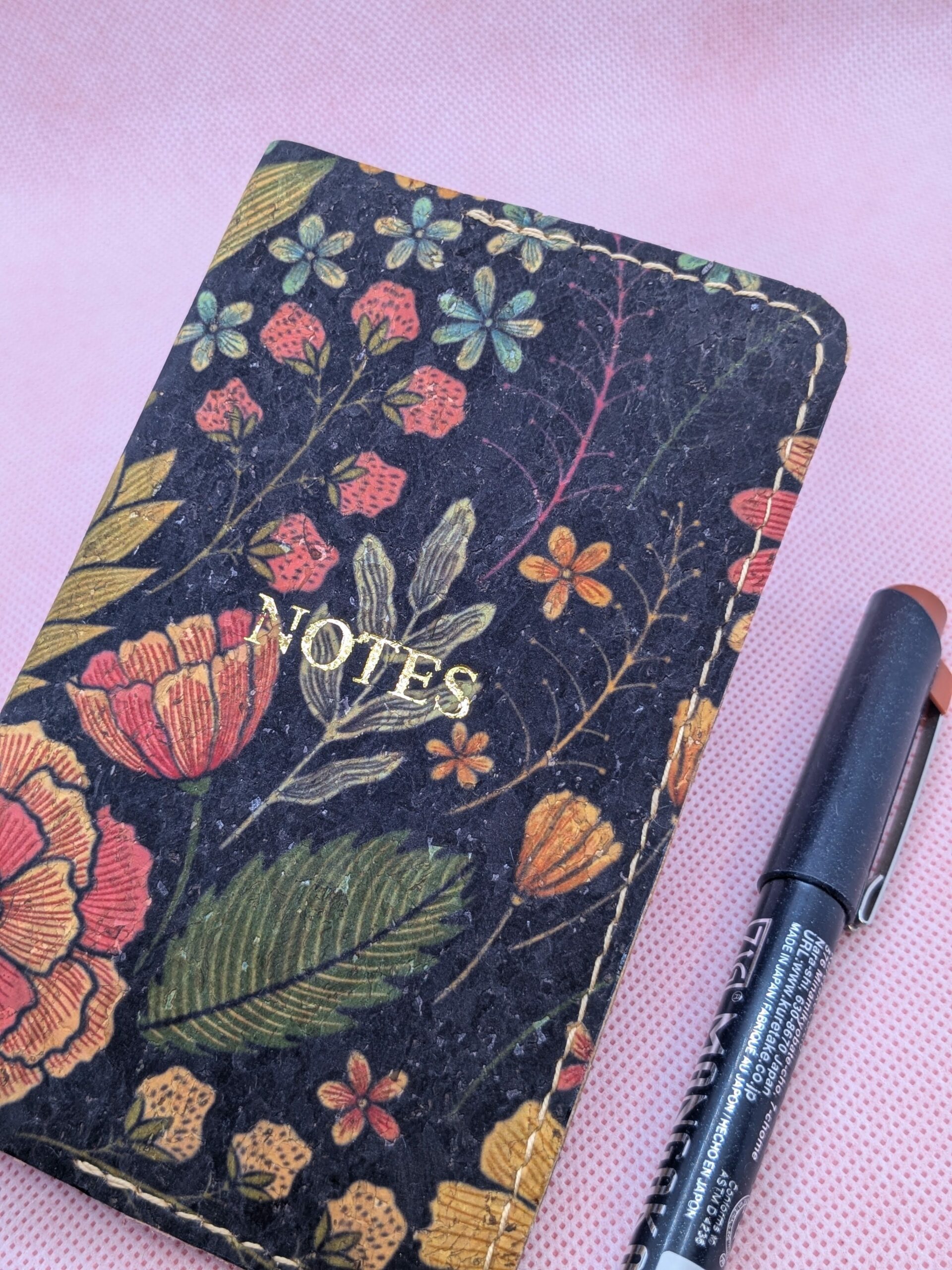 Chaque couverture de carnet est confectionnée en liège au point traditionnel sellier dans mon atelier. (Couture à la main : sans machine)