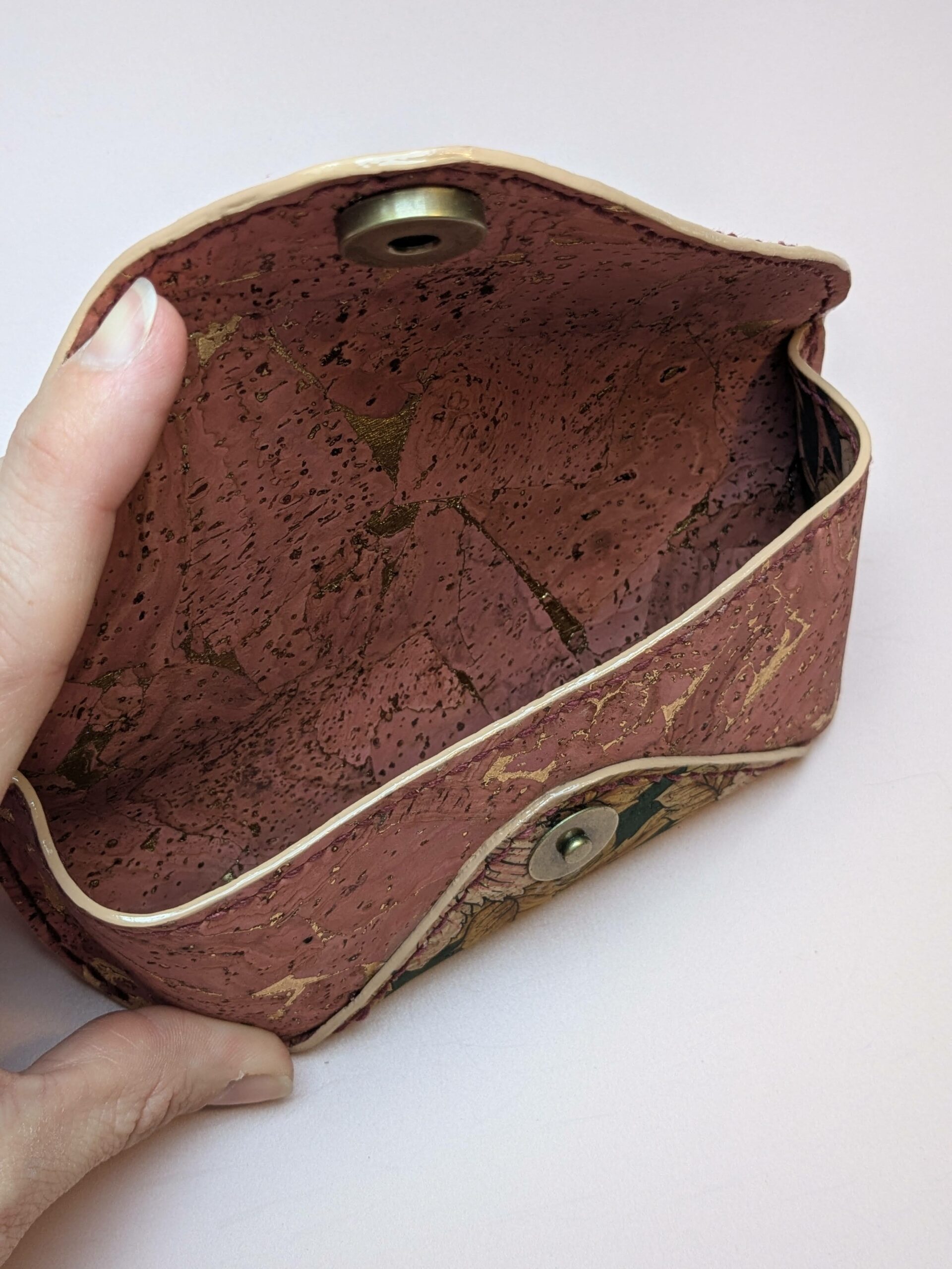 Chaque pièce est soigneusement cousu à la main dans mon atelier. Le liège, matière douce et résistante est une belle alternative écoresponsable au cuir.