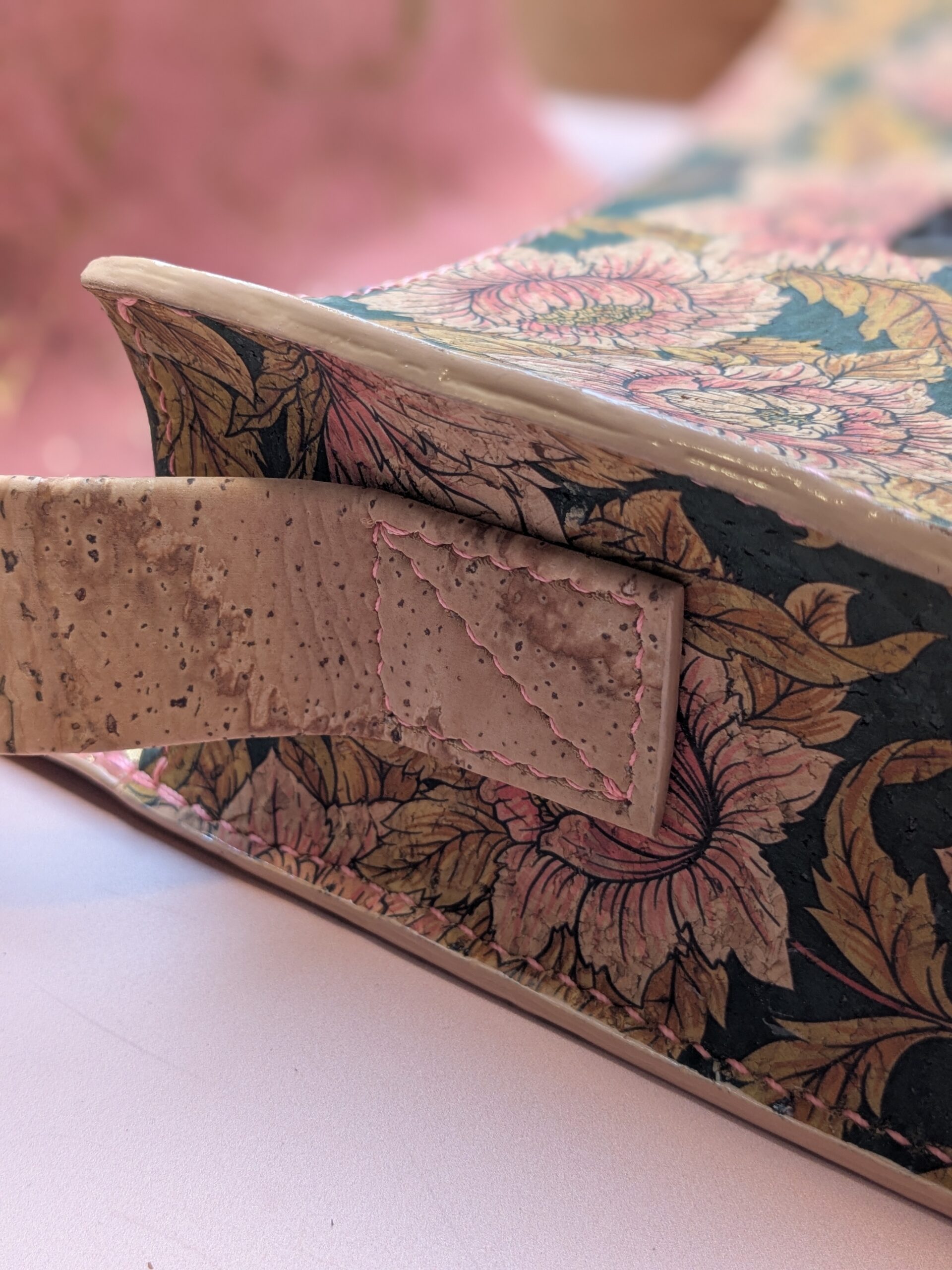 Chaque pièce est soigneusement cousu à la main dans mon atelier. Le liège, matière douce et résistante est une belle alternative écoresponsable au cuir.