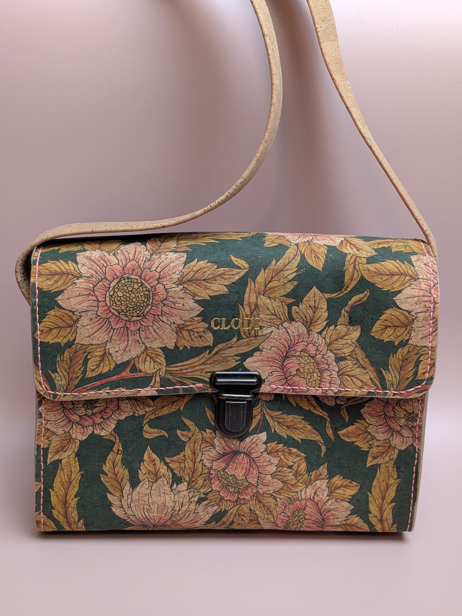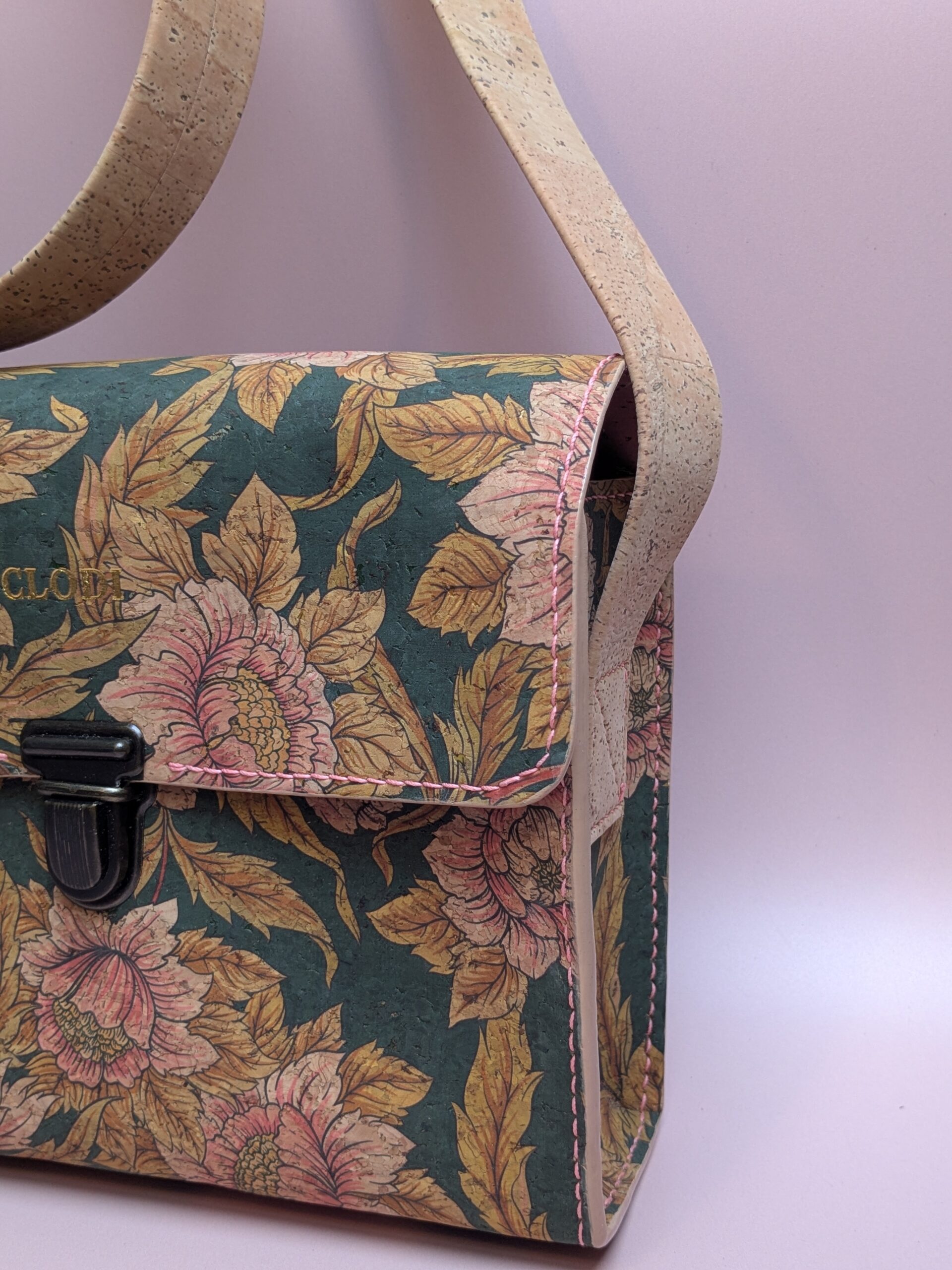 Matière : liège imprimé floral rose et vert assorti d’un liège rose