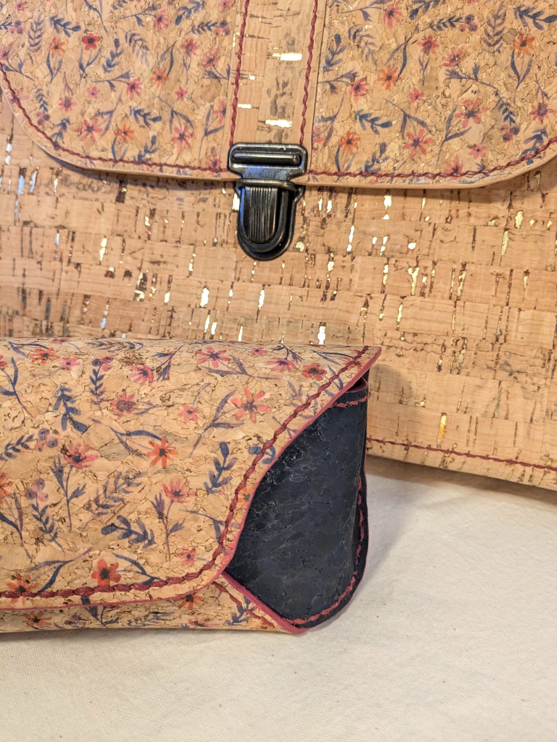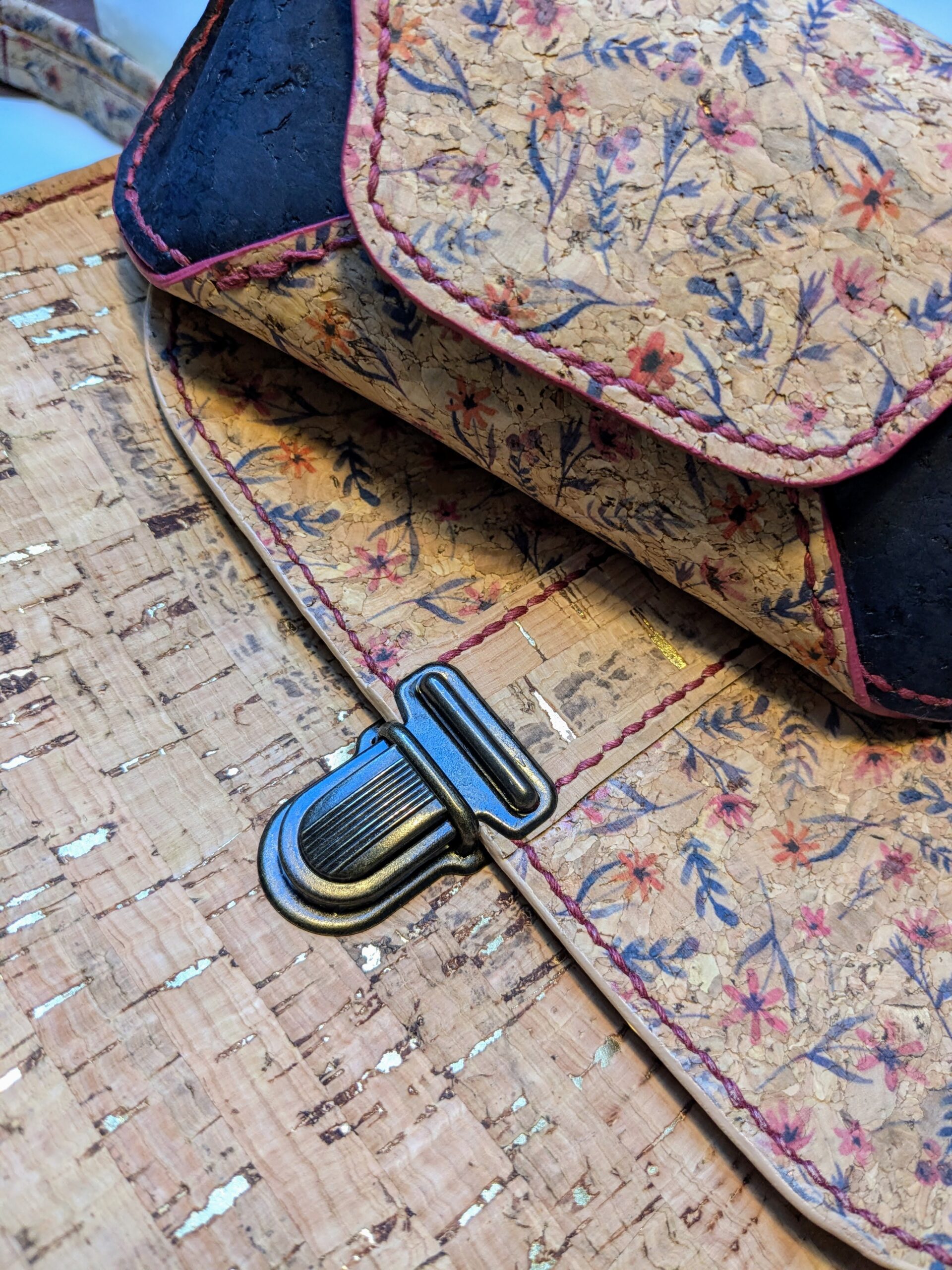 L’atout principal est sa légèreté, les coutures sont faites à la main au point sellier (point traditionnel en maroquinerie) ce qui rend les coutures très solides.